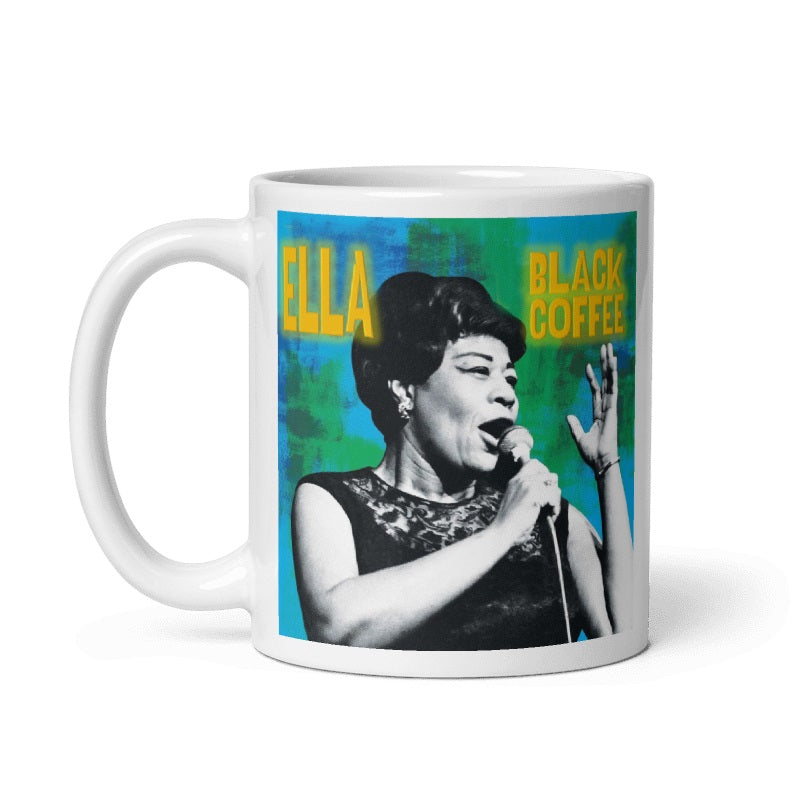 Stir up warm memories of one of the greatest coffee songs of all times--Ella's classic 1950s version of Black Coffee. Our premium ceramic mugs are available in 11oz and 15oz styles. Microwave and dishwasher safe. Color: Cream